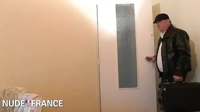 A horny French brunette cougar strips and puts on her sexiest lingerie. She lets two other older men go to town on her, pounding her pussy with their fists. She moans loudly as she takes every inch, loving every moment of this triple threat.